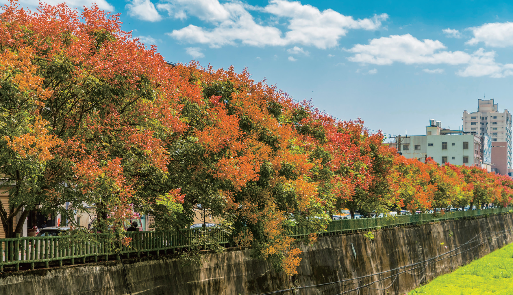 想感受季節變換,不用遠離花蓮市區也能看得到!首推位於吉安鄉的楓林步道,步道平緩好走,全長約2.85公里,每到秋